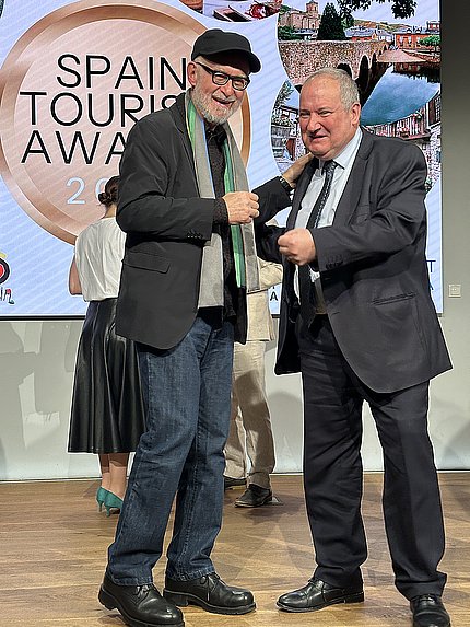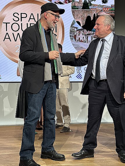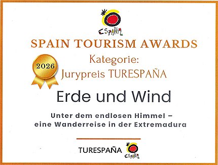 Donaustauf / Berlin – Mit dem Jurypreis des Spain Tourism Award 2026 ist der Reiseunternehmer Herbert Grabe aus Donaustauf bei Regensburg ausgezeichnet worden. Spaniens Tourismusminister Jordi Hereu, der ehemalige Bürgermeister von Barcelona, würdigte damit auf der Internationalen Tourismusbörse (ITB) in Berlin die neuntägige Reise »Unter dem endlosen Himmel«, mit der das Unternehmen Erde und Wind in die karg-schöne Region Extremadura einlädt. In der Begründung lobt die Jury Herbert Grabes Konzept, den Besuchern Bildung und Erlebnisse zu bieten und gleichzeitig den Menschen in der besuchten Landschaft eine nachhaltige Wertschöpfung möglich zu machen. Wörtlich heben die Juroren »authentische Begegnungen mit lokalen Gemeinschaften, Reisen außerhalb der Hochsaison und einen verantwortungsvollen Umgang mit der Destination« hervor.