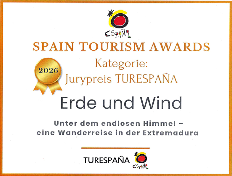 AKTUELL Berlin im März 2026: Erde und Wind gewinnt den Jurypreis der Spain Tourism Awards 2026 mit der Reise in die Extremadura: »Unter dem endlosen Himmel«!